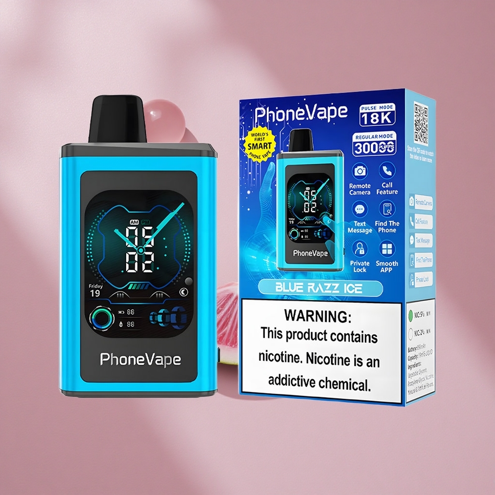 JNR PhoneVape 30000 затяжек Одноразовый вейп с Turbo Mode и Blue Razz Ice (Голубая Малина Лёд)