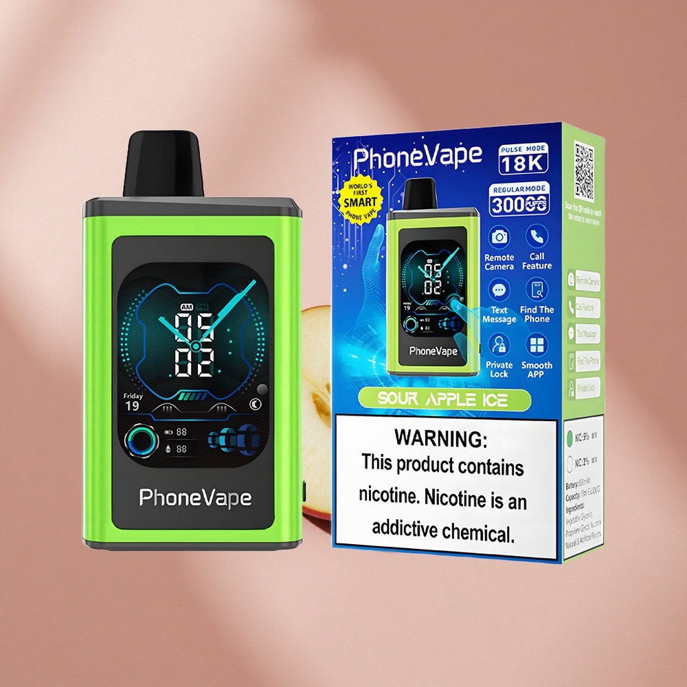 JNR PhoneVape 30000 затяжек Sour Apple Ice (Ледяное Яблоко) с 850mAh Type-C аккумулятором