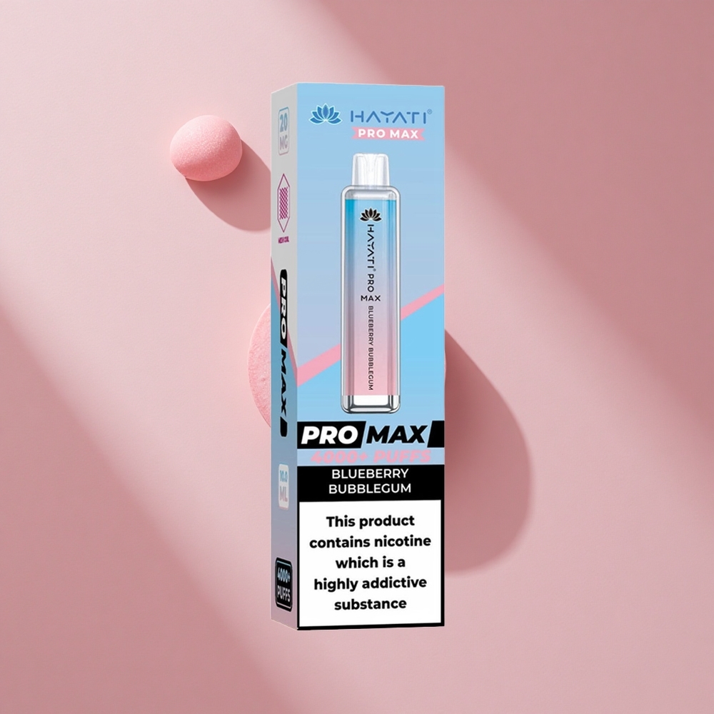 Начало| Новая Cерия| Hayati| Hayati Pro Max 4000| Hayati Pro Max 4000 Puffs Одноразовый вейп Черничная Жвачка с LED-подсветкой и 1400mAh батареей