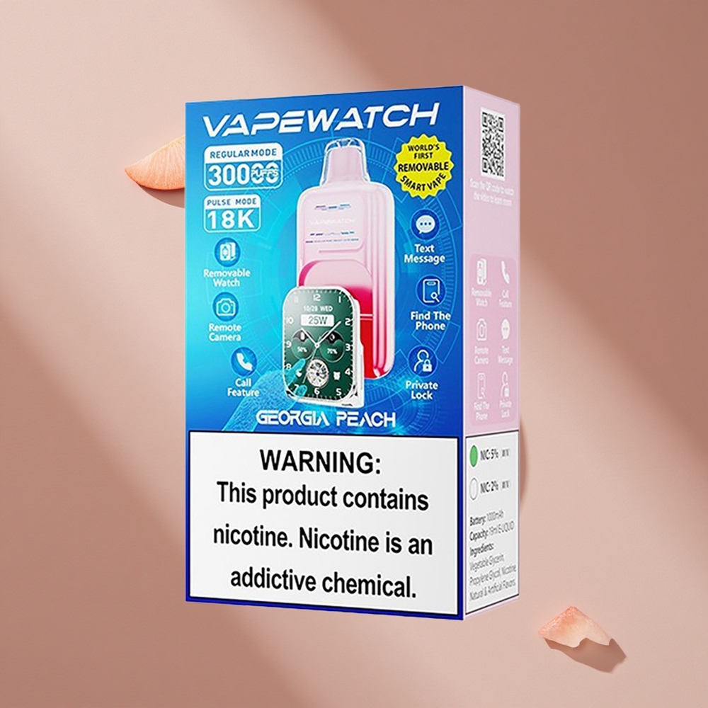 Начало| Новая Cерия| JNR| JNR VapeWatch 30000| JNR Vape Watch 30000 Puffs Грушевый Персик (19 мл, 5% никотина)